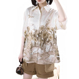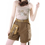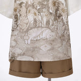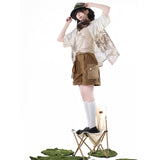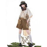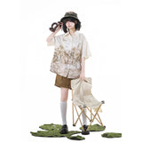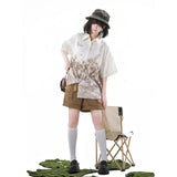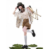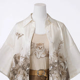 庭園の子猫ブラウスとキャミソールとハーフパンツ