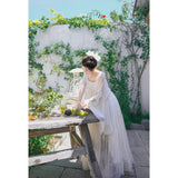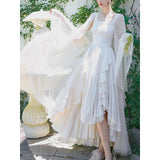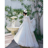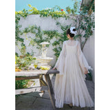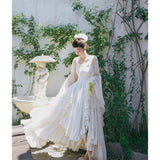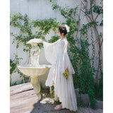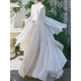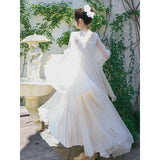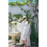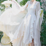 きらめく光を纏って。極めて軽やかで透明感のあるシフォン素材のロングカーディガン。たっぷりと贅沢な生地使いで、ゆったりとした袖と流れるようなシルエットが特徴的。風をはらんでふわりと舞い上がる様子はまるで天女の羽衣のよう。儚げで幻想的なムードを添えてくれる一枚。