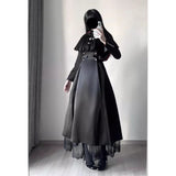 沈黙の修道女のゴシックワンピースとフードケープ - Black Red[2026年5月上旬-6月上旬発送予定]