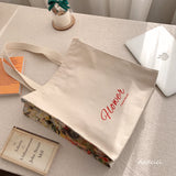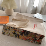 クロード・モネの『Flower』を描いたトートバッグ。色鮮やかな色彩と油絵の筆致が見事に描かれたアイテムです。厚手のキャンバス生地で作られており、たっぷりの収納力が嬉しい。内側にはポケットが付属しています。パソコンやお気に入りの本を詰めてお出掛けしてみて。