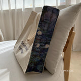 クロード・モネの『睡蓮』を描いたトートバッグ。美しい花々が咲き乱れるパリ郊外・ジヴェルニーのモネの庭が思い浮かぶ。厚手のキャンバス生地で作られており、たっぷりの収納力が嬉しい。内側にはポケットが付属しています。パソコンやお気に入りの本を詰めてお出掛けしてみて。