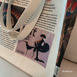 ロートレックの『ムーラン・ルージュ』を描いたトートバッグ。伝説のナイトクラブの常連客たちが描かれています。厚手のキャンバス生地で作られており、たっぷりの収納力が嬉しい。内側にはポケットが付属しています。パソコンやお気に入りの本を詰めてお出掛けしてみて。