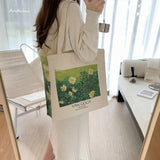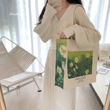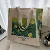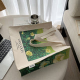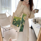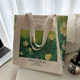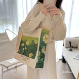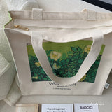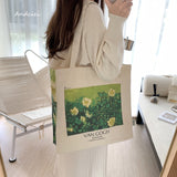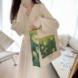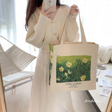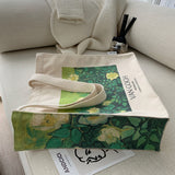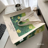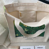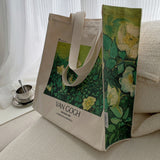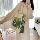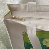 ゴッホの『野ばら』を描いたトートバッグ。青々とした葉陰に咲いた野薔薇。青々とした緑が花の白さを際立たせています。咲き誇る花は儚く、儚くもあるから美しい。厚手のキャンバス生地で作られており、たっぷりの収納力が嬉しい。内側にはポケットが付属しています。パソコンやお気に入りの本を詰めてお出掛けしてみて。