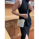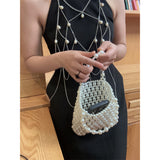 煌びやかに輝く艶めきのある光沢感が魅力のパールのショルダーバッグ。大小異なるサイズのパールを繋ぎ合わせたエレガントなアイテム。チェーンを外してハンドバッグとしてもお使いいただけます。サイズ感がとても小さいので、小さなお財布もしくはスマホを入れて、お出かけしてみて。