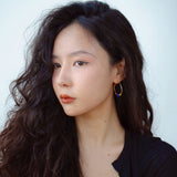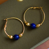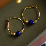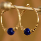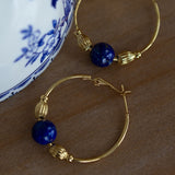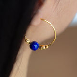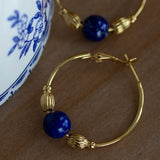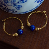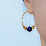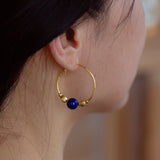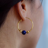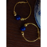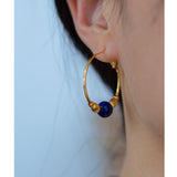青色の美しい宝石の瑠璃を使った金環のピアス。丸く形取られた瑠璃は宇宙に浮かぶ青い彗星みたい。神秘的な美しさに引き込まれます。流行に左右されないレトロな雰囲気が漂います。