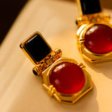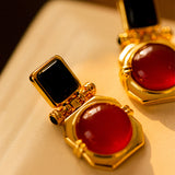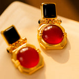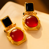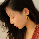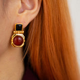 すべての色を消し去る漆黒と闇夜と、闇を切り裂く真っ赤な太陽をイメージしたピアス。黒瑪瑙と赤瑪瑙を精巧に組み合わせたアイテム。艶やかに照り輝く瑪瑙が美しい。流行に左右されないレトロな雰囲気が漂います。