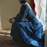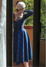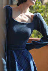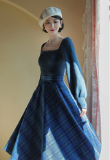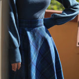 青藍の格子縞アンブレラスカート