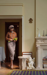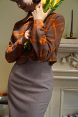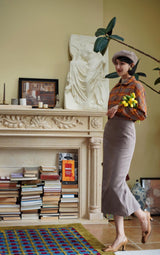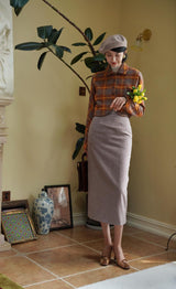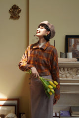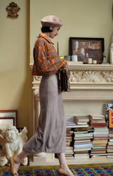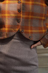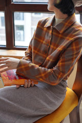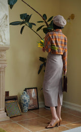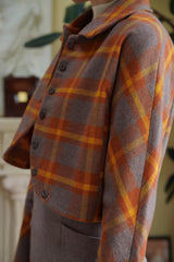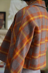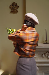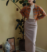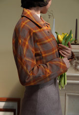 1950年代を彷彿とさせるクラシカルなショートジャケット。前立てから裾にかけての丸みのあるカーブと、ボタン留めの間隔が狭いのが特徴的。程よい厚みのあるツイード生地のアイテムです。ハイウエストなボトムスとの相性が抜群です。