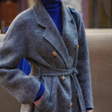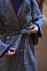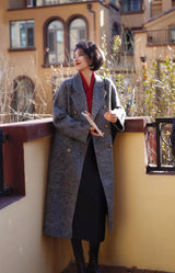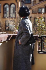 華麗なる貴婦人を演出してくれるロングウールコート。ゆったりとした厚みのある生地となっており、優雅で上品なドレープ感に魅了される。ウエストリボンを結んでお召しいただくこともできます。重厚さと洗練さを兼ね備えたエレガントなアイテム。