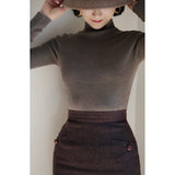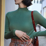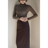 すっきりとした印象でお召しいただけるタートルネックセーター。比較的スリムなシルエットながら、あたたかみのあるウール生地となっています。やわらかな着心地が特徴的。ハイウエストなボトムスと合わせて、エレガントな貴婦人に。