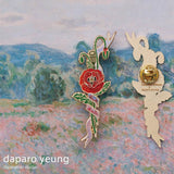 クロード・モネが描いた「ポピー畑」の赤いポピーをモチーフにしたブローチ。それは真っ赤に燃える華麗な花。軽妙な筆致で描かれた色鮮やかな赤いポピーが美しい。胸元に付けると、優雅でロマンティックな雰囲気が漂います。