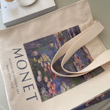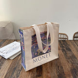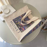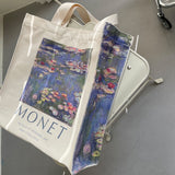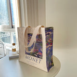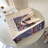 モネの『睡蓮』を描いたトートバッグ。ジヴェルニーのモネの庭の「水の庭」に咲いた睡蓮。やわらかな光に満たされた風景は幻想的でロマンティック。厚手のキャンバス生地で作られており、たっぷりの収納力が嬉しい。内側にはポケットが付属しています。パソコンやお気に入りの本を詰めてお出掛けしてみて。