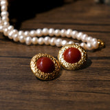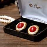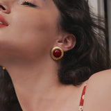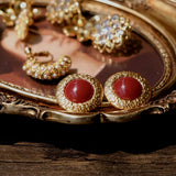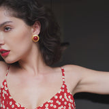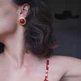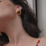 王侯貴族の舞踏会には格式高いワインが欠かせない。そんな華やかな饗宴を彩るワインみたいな色合いの耳飾り。金色に輝く耳飾りは、単調ではなく複雑さと華やかさがあります。ロマンティックな一夜を過ごしてみて。