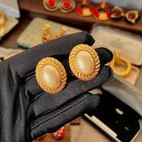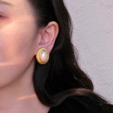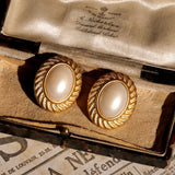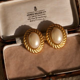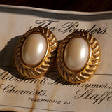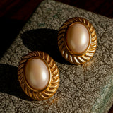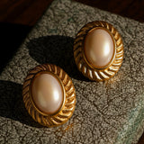 エレガントな伯爵令嬢のための耳飾り。艶やかな丸みを帯びたパールに編み込まれた金色が縁取られています。優雅で洗練された気品溢れるアイテム。眩しく放たれる輝きは、日常に落とし込んだプリンセススタイル。
