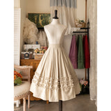 エレガントな英国のお嬢様みたいに演出してくれるプリーツアンブレラスカート。大胆に装飾されたフリルが愛らしさと華やかさを印象づけてくれる。ふわりと膨らむ優雅なシルエットに魅了される。時代を超えて輝く永遠のスタイル。洗練された気品を纏ったお嬢様に。
