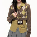 ハリーポッターとKYOUKOによる公式コラボアイテム。魔法魔術学校の制服をモチーフにしたアーガイル柄のカーディガンセーター。胸元から肩にかけて施された伝統的なダイヤ模様が、クラシックで上品な雰囲気を醸し出しています。襟付きのデザインとフロントボタン仕様は制服らしい端正さを強調し、裾や袖口のリブ編みが柔らかなフィット感を演出。洗練されたカレッジスタイルを演出してくれるアイテム。キュートで愛らしい魔法少女に。ファンタジーの世界へようこそ。