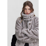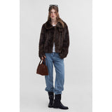 ふわりとした毛並みが贅沢な存在感を放つ、フェイクファージャケット。肩から裾までたっぷりとしたボリュームがありながらも、ウエスト丈で軽やかにまとまったシルエットが特徴的。フロントはシンプルなボタン留めで、カジュアルなデニムにも馴染むバランスの良さがあり、袖口までふんわりとした毛並みが続くことで全体にリュクスなムードを漂わせます。