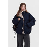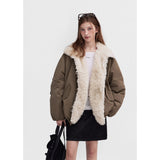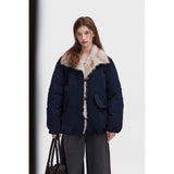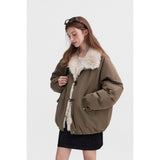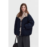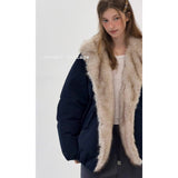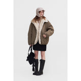 柔らかなファーの存在感と丸みを帯びたシルエットが印象的なジャケット。淡いベージュのファーが縁取りのようにのぞき、顔周りをふんわりと包み込みます。留め具にはトグルボタンが使われ、カジュアルでありながらどこかクラシカルな温もりが漂います。ほどよく膨らむ袖や裾のシェイプが、柔らかくあたたかなアウターとして仕上がっている。