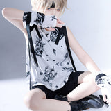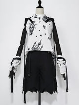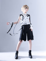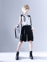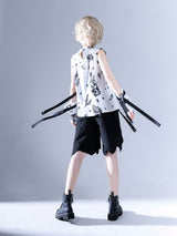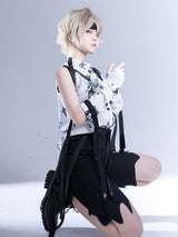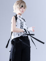 西洋の見捨てられた古城に眠る暗黒のランプと髑髏瓶と、菱形のロズンジ紋章を描いたノースリーブトップスとアームカバー。肩からベルトを垂らしたデザインとなっており、アームカバーにもベルトが装飾されています。ダークなゴシック世界に誘われてみて。