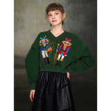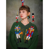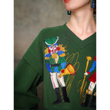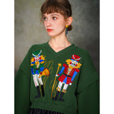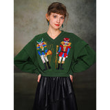 くるみ割り人形を贈られた少女が、人形と共におとぎの国へと旅をする”くるみ割り人形”の世界を描いた刺繍セーター。丈感は短く、ゆったりとした袖が特徴的。おもちゃの兵隊たちとの勇敢な戦いを経て、王子となったくるみ割り人形。ロマンティックなファンタジーの世界に誘われてみて。クリスマスイヴの夜、どうか素敵な夢を見れますように。