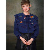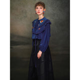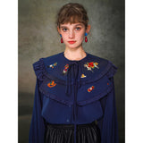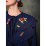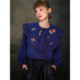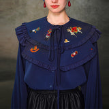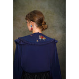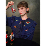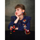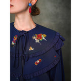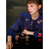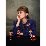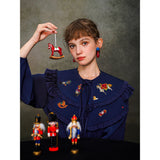 くるみ割り人形を贈られた少女が、人形と共におとぎの国へと旅をする”くるみ割り人形”の世界を描いた刺繍ケープレットブラウス。ケープレットは取り外しが可能となっています。おもちゃの兵隊たちとの勇敢な戦いを経て、王子となったくるみ割り人形。ロマンティックなファンタジーの世界に誘われてみて。クリスマスイヴの夜、どうか素敵な夢を見れますように。