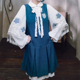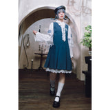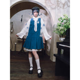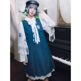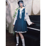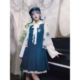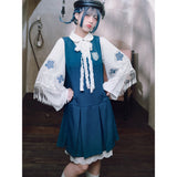 知性と可憐さを併せ持ったワンピース。深みのあるブルーの生地は落ち着いた印象を与えつつ、フロントのボックスプリーツが程よい立体感を生み、動きにリズムを添えます。胸元のエンブレム風パッチにはクラゲが刺繍されています。学園ドラマのヒロインのような品格を演出してくれるアイテム。