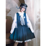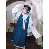 孔雀青の海月の刺繍プリーツワンピース