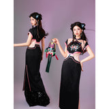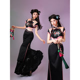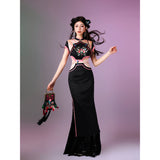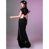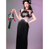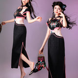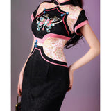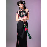 静かに羽ばたく蝶の姿を、繊細な刺繍と立体的な織りで表現したチャイナワンピース。胸元にあしらわれた宝石のような蝶の刺繍は、色鮮やかにきらめき、まるで千年の古書から飛び出してきた宝物みたい。黒地には、時を刻んだ落ち着きとクラシックな気品が漂い、淡いピンクの錦織サテンには、詩のような優美さが宿ります。伝統文化のエッセンスと現代的な美意識を融合させ、優雅かつ洗練された印象に。