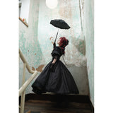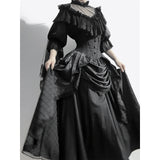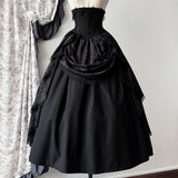 美しさと気品を兼ね備えた伯爵令嬢みたいに演出してくれるコルセットスカート。上品で洗練された雰囲気を醸し出し、高い品格を感じさせるヴィクトリアンスタイル。ウエストを引き締める高めのコルセットが特徴で、フロントにはボタンが並んでいます。スカート部分は、上品なレースとフリルが施されたデザインで、豪華な雰囲気を醸し出しています。プリーツが入ったオーバースカートがドレッシーな印象を与え、エレガントでクラシックなシルエットを作り出しています。