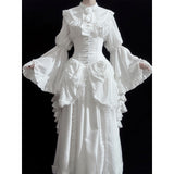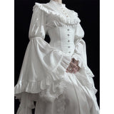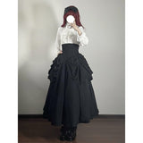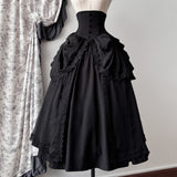 美しさと気品を兼ね備えた伯爵令嬢みたいに演出してくれるコルセットスカート。上品で洗練された雰囲気を醸し出し、高い品格を感じさせるヴィクトリアンスタイル。ウエストを引き締める高めのコルセットが特徴で、フロントにはボタンが並んでいます。スカート部分は、上品なレースとフリルが施されたデザインで、豪華な雰囲気を醸し出しています。プリーツが入ったオーバースカートがドレッシーな印象を与え、エレガントでクラシックなシルエットを作り出しています。