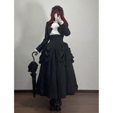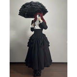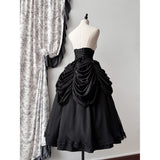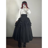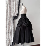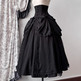 美しさと気品を兼ね備えた伯爵令嬢みたいに演出してくれるコルセットスカート。上品で洗練された雰囲気を醸し出し、高い品格を感じさせるヴィクトリアンスタイル。ウエストを引き締める高めのコルセットが特徴で、フロントにはボタンが並んでいます。スカート部分は、上品なレースとフリルが施されたデザインで、豪華な雰囲気を醸し出しています。プリーツが入ったオーバースカートがドレッシーな印象を与え、エレガントでクラシックなシルエットを作り出しています。