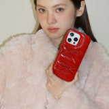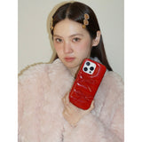 立体的なリボンが施されたiPhoneケース。もこもことした愛らしいデザイン。リボンのモチーフがガーリーな魅力を際立たせます。フェミニンでロマンティックな主役的な存在感を放つアイテム。