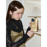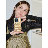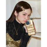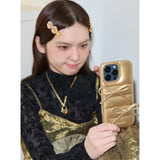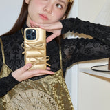 立体的なリボンが施されたiPhoneケース。もこもことした愛らしいデザイン。リボンのモチーフがガーリーな魅力を際立たせます。フェミニンでロマンティックな主役的な存在感を放つアイテム。