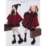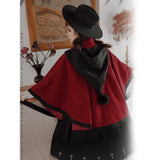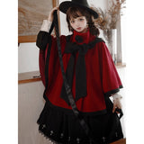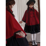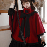 物語のお嬢様のケープコートとリボンフード - Wine Red[2025年12月上旬-2026年1月上旬発送予定]