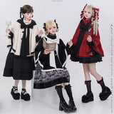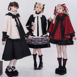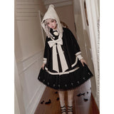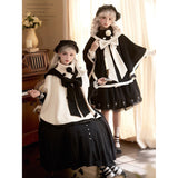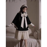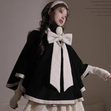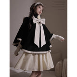 物語のお嬢様のケープコートとリボンフード - Black[2025年12月上旬-2026年1月上旬発送予定]