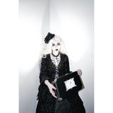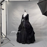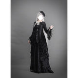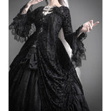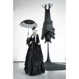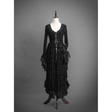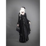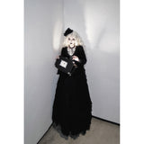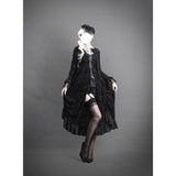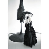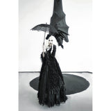 圧倒的な存在感と、ドラマティックでダークな雰囲気を漂わせたアイテム。ワンピースは、優雅に揺られるドレープ感があり、月明かりに照れされて黒影となったベルベットの花々が散らされています。エレガントでミステリアスな雰囲気を醸し出して。