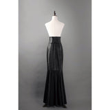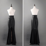 暗黒世界に誘われたお嬢様に。ミステリアスな雰囲気が漂うロング丈のマーメイドスカート。ハイウエストのコルセットスタイルがウエストラインを美しく強調し、シルエットをスタイリッシュに見せています。フロント部分はアシンメトリーなデザインで動きのある印象を与え、スカートの下部はフロアレングスで流れるような美しいラインを描きます。また、レースアップのディテールが施されており、クラシカルな要素をモダンにアレンジしています。ドラマティックでダークな雰囲気に魅了されて。