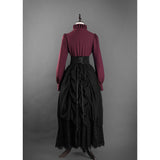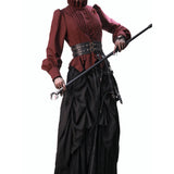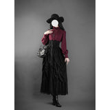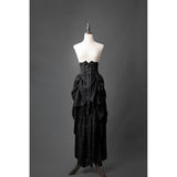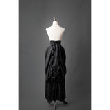 ヴィクトリアンスタイルの要素を取り入れた、エレガントでドラマティックなロングスカート。後ろ姿も美しく、編み上げリボンが特徴的。ウエスト部分にはコルセットが施されています。スカートの下部分には繊細なレースが重ねられており、動きに合わせて流れるようなシルエットを作り出します。