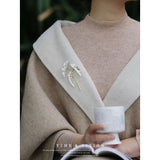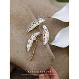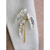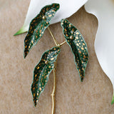 植物界の水玉模様の女王。葉っぱに宝石のような輝きを放つトラウトベゴニアをモチーフにした陶器のブローチ。秘密の模様を描く、斑紋の魔術師。葉の模様で物語を紡ぐ、森の詩人。枝部分に金色のアクセントを添え、繊細なデザインに仕上げました。