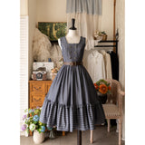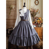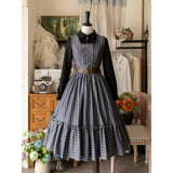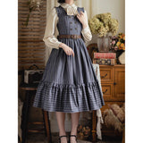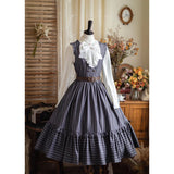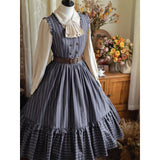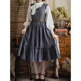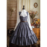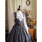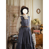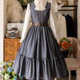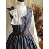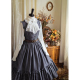 エレガントな英国のお嬢様みたいに演出してくれるクラシカルなジャンパースカート。ダブルブレストのデザインで、ネックラインや肩まわりにはフリルが装飾されています。ふわりと膨らむ優雅なシルエットに魅了される。時代を超えて輝く永遠のスタイル。洗練された気品を纏ったお嬢様に。