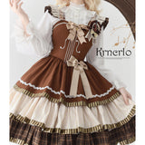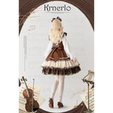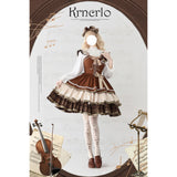 美しき旋律を奏でる弦楽器をモチーフにした刺繍ジャンパースカート。裾部分は異なる生地が幾重にも重なり、重厚感と優雅さを兼ね備えた印象を与えてくれる。ふわっとした膨らみのある裾がエレガントな雰囲気。胸元とウエスト部分にはリボンが装飾されています。