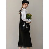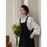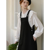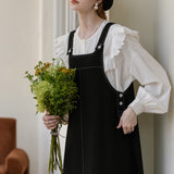 優雅な黒を纏った黒百合の花のような色合いのジャンパースカート。シンプルでクラシカルなデザインが特徴的で、ストンと落ちるシルエットは上品で、どんなトップスとも相性が良い。レースやフリルが施されたブラウスと合わせると、フレンチガーリーな雰囲気に演出してくれる。