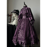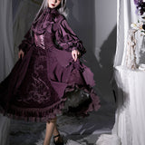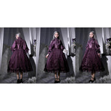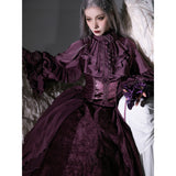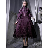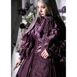 神秘的な“龍骨の墓園”をテーマにしたダークで優雅なジャンパースカート。ウエスト部分にコルセットを組み合わせたようなデザインは、美しいシルエットを演出してくれる。裾部分には、蛇の骨と龍骨の刺繍が施されており、サイドには、不規則なカッティングと流れるようなドレープが特徴的なテクスチャが装飾されています。幻想的かつ退廃的な世界観を表現したアイテム。