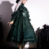 神秘的な“龍骨の墓園”をテーマにしたダークで優雅なジャンパースカート。ウエスト部分にコルセットを組み合わせたようなデザインは、美しいシルエットを演出してくれる。裾部分には、蛇の骨と龍骨の刺繍が施されており、サイドには、不規則なカッティングと流れるようなドレープが特徴的なテクスチャが装飾されています。幻想的かつ退廃的な世界観を表現したアイテム。