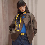 重厚感と洗練を兼ね備えたモードなレザージャケット。オーバーサイズシルエットとドロップショルダーが、ほどよい抜け感を演出しながらも存在感を放ちます。高めのスタンドカラーとアシンメトリーなボタンデザインが、クラシックとモダンを融合させた印象的なディテール。ラフに羽織るだけで、アートギャラリーのような空気を纏う、コンテンポラリーなレザージャケットです。