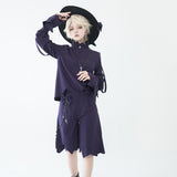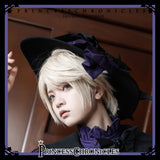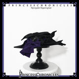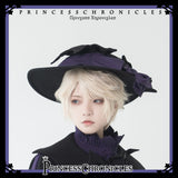 神秘的でミステリアスな雰囲気が漂う帽子。黒と紫のリボンが交互に編み込まれたアイテム。同系色のトップスやボトムスと合わせたコーデは雰囲気たっぷり。