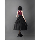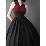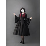 黒紅のお嬢様の編み上げジャンパースカートとトップス