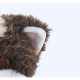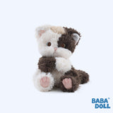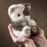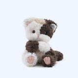 抱きしめたくなるような可愛らしい猫の赤ちゃんのぬいぐるみ。ふわふわした長めの毛並み、ピンクの肉球がついた可愛らしい足。破れたベッドカバーを被って、こちらを見つめる姿にキュンとくる。