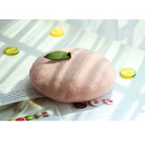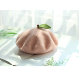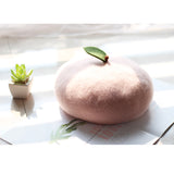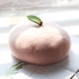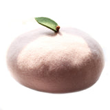 枝に宿る、生命力溢れる柔らかな宝石。桃をモチーフにした羊毛フェルトのベレー帽。ウール特有のふくらみと柔らかさのある素材感が特徴的。頭の先の木の葉と枝が可愛らしい。自由な角度で左右に傾けて、お好みのスタイルでお楽しみください。