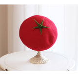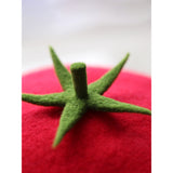 畑に実る、赤く輝く太陽の恵みの結晶。トマトをモチーフにした羊毛フェルトのベレー帽。ウール特有のふくらみと柔らかさのある素材感が特徴的。トマトのヘタが如実に表現されています。自由な角度で左右に傾けて、お好みのスタイルでお楽しみください。